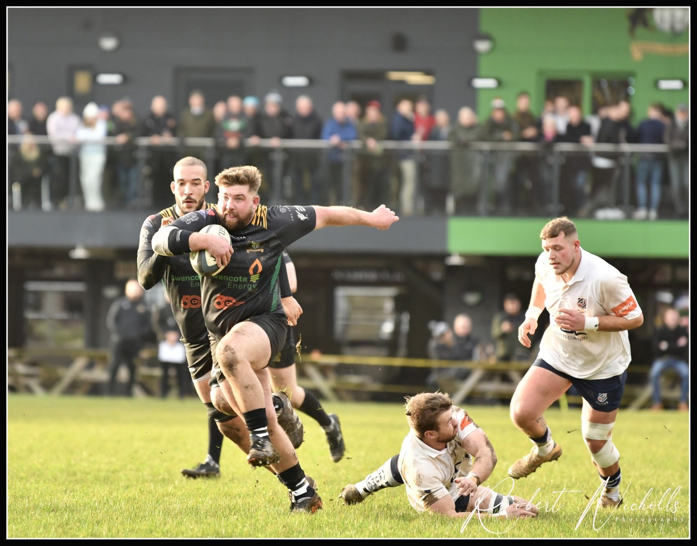 Bridgnorth dropped the ball at the restart and Banbury regathered and then a missed tackle on their outside centre allowed him to attack the home line, the home side managed to tackle him into touch and give themselves a defensive five-metre lineout. Despite losing the ball, Bridgnorth displayed superb defence and denied Banbury a scoring opportunity. The away side kept the pressure on and a cross-field kick looked to have earned them a try, but the ball was knocked on. Bridgnorth’s attack then turned on the style and Gareth Bladen regathered a kick ahead to set the backs in motion, good handling ended with a chip ahead that was cleared by Banbury. More open play by both sides ended with a knock-on by Banbury and a penalty to Bridgnorth from the resulting scrum. This time, the home side took a tap penalty, and a series of strong ‘pick and go’ drives ended with Nicholls grounding the ball for his hat-trick try and a first-half try bonus point for Bridgnorth.