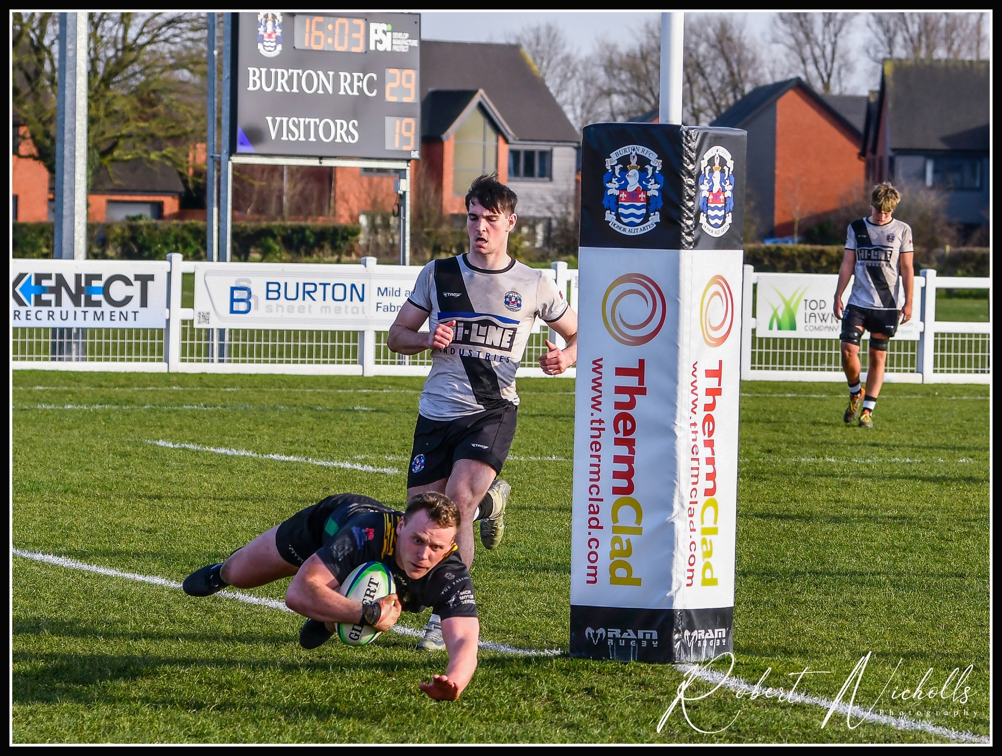 The game developed into a high-energy battle with play being stretched end-to-end and both defences being tested. Manasa Volaikisuva put in a great jackal to halt the opposition at one stage. Bridgnorth then failed to find touch with clearing and penalty kicks before they were penalised for offside and Burton kicked the three points. Burton now turned the screw in attack and crossed in the corner for a try after some questionable tackling, this was followed up with an excellent touchline conversion. Bridgnorth then raised their own game and after a twenty-metre lineout and a further ‘tap & go’ penalty, George Newman surged over for a try converted by Benji Ritson to make the score 17-12. Newman was injured in the act of scoring and was replaced by Ben Morris. Burton then had their prop sent to the sin-bin and Bridgnorth kicked for a twenty-five-metre lineout. The throw wasn’t straight however and Burton then won a penalty and crossed for another try in the corner, again expertly converted from the touchline. The referee blew for half-time with the scoreboard reading 24-12.