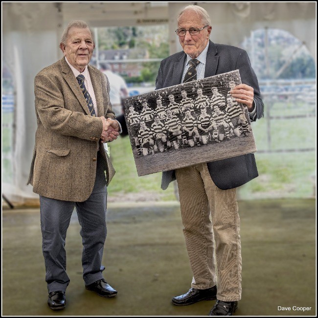 Pictured - Paddy founder member presenting Bob Turner with a picture of the Original XV from 1962.
