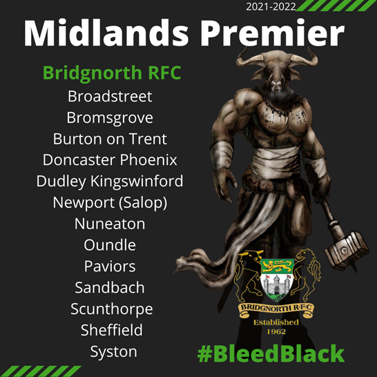 Bridgnorth RFC 1st XV will kick off their Midlands Premier 2021-2022 League campaign with a home game v Syston on Saturday 4th September.