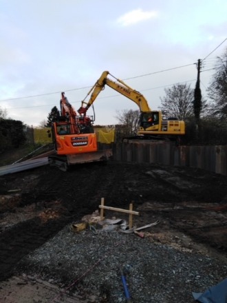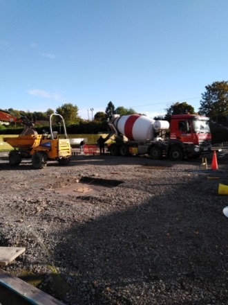 The photographs show the progress on site covering the final concrete being poured for the completion of the foundations and the installation of the interlocking sheet piling for retaining the Bandon Lane adjacent to the ramped entrance to the New Clubhouse.