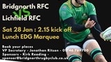 Vice Presidents and Sponsors Day Saturday 28th January Bridgnorth RFC V Lichfield RFC Book your places VP Secretary - Jonathan Ritson - 01746 769700 Sponsors - Kirk Reading - … view
